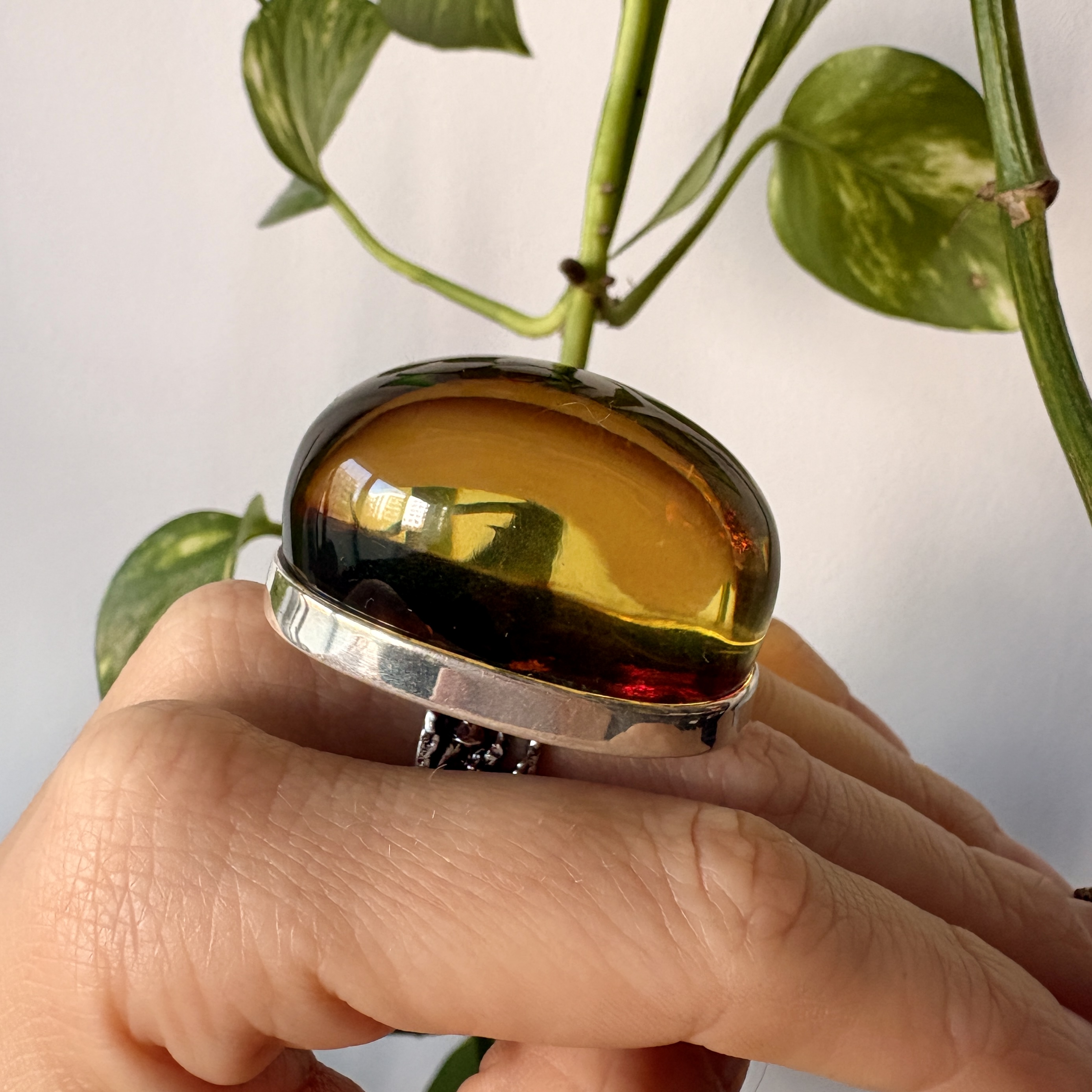 Ten unikatowy pierścionek jest ręcznie wykonany ze srebra próby 925 i naturalnego Bursztynu Bałtyckiego
