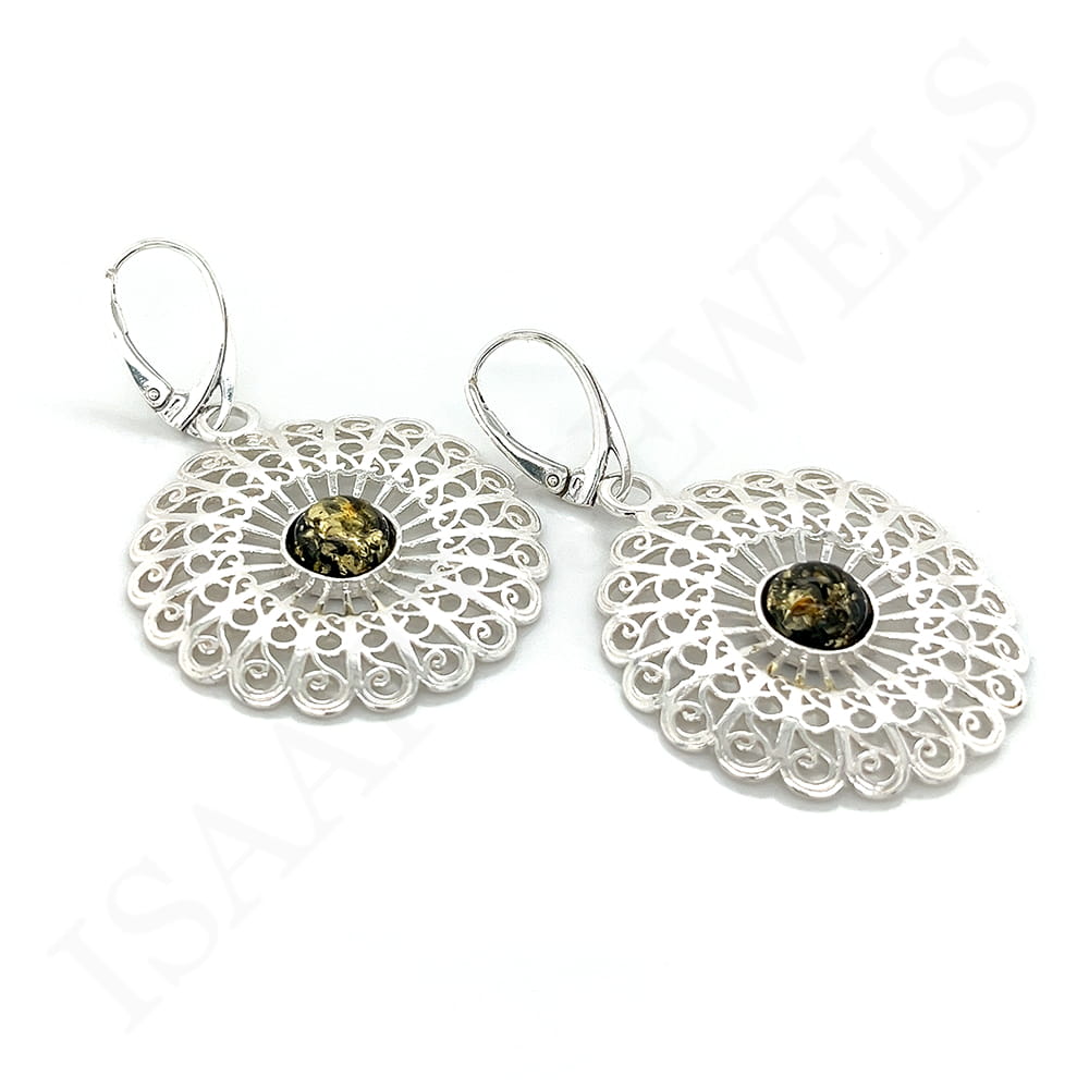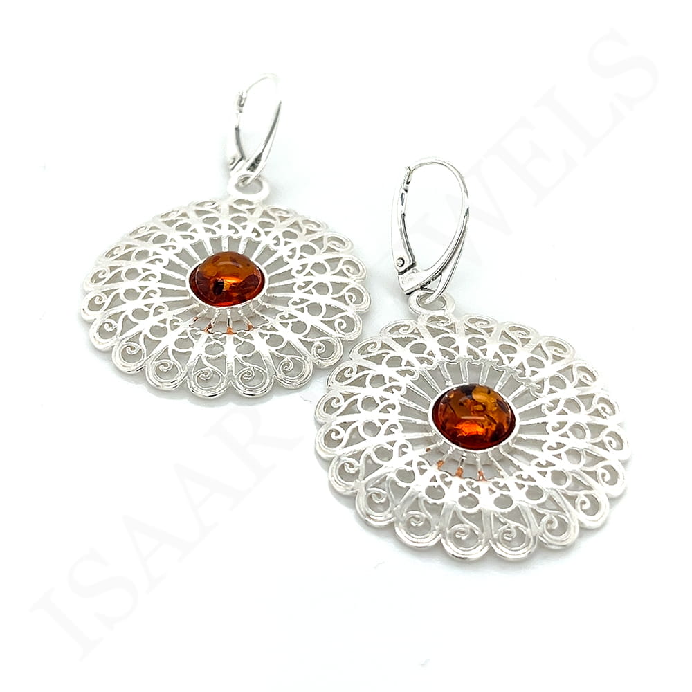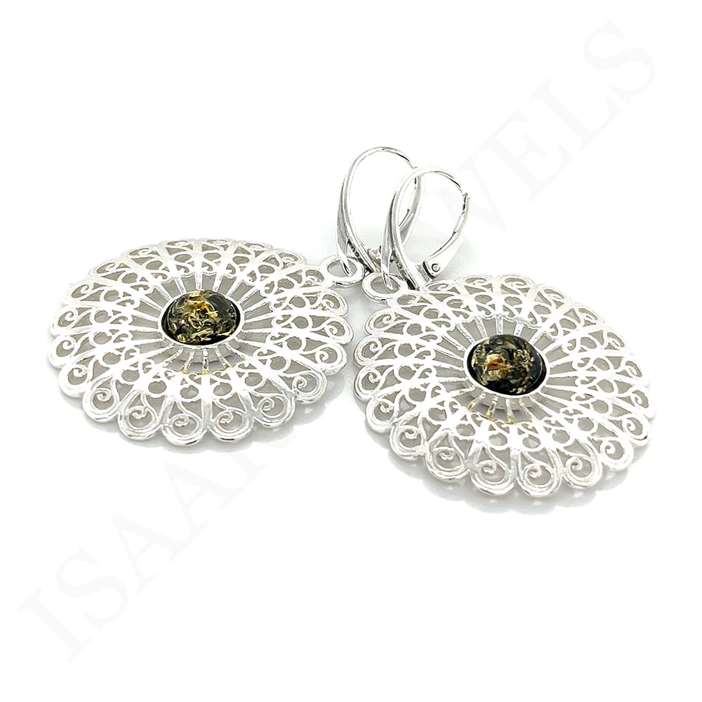 Duże Kolczyki Srebrne Rozety z Bursztynem