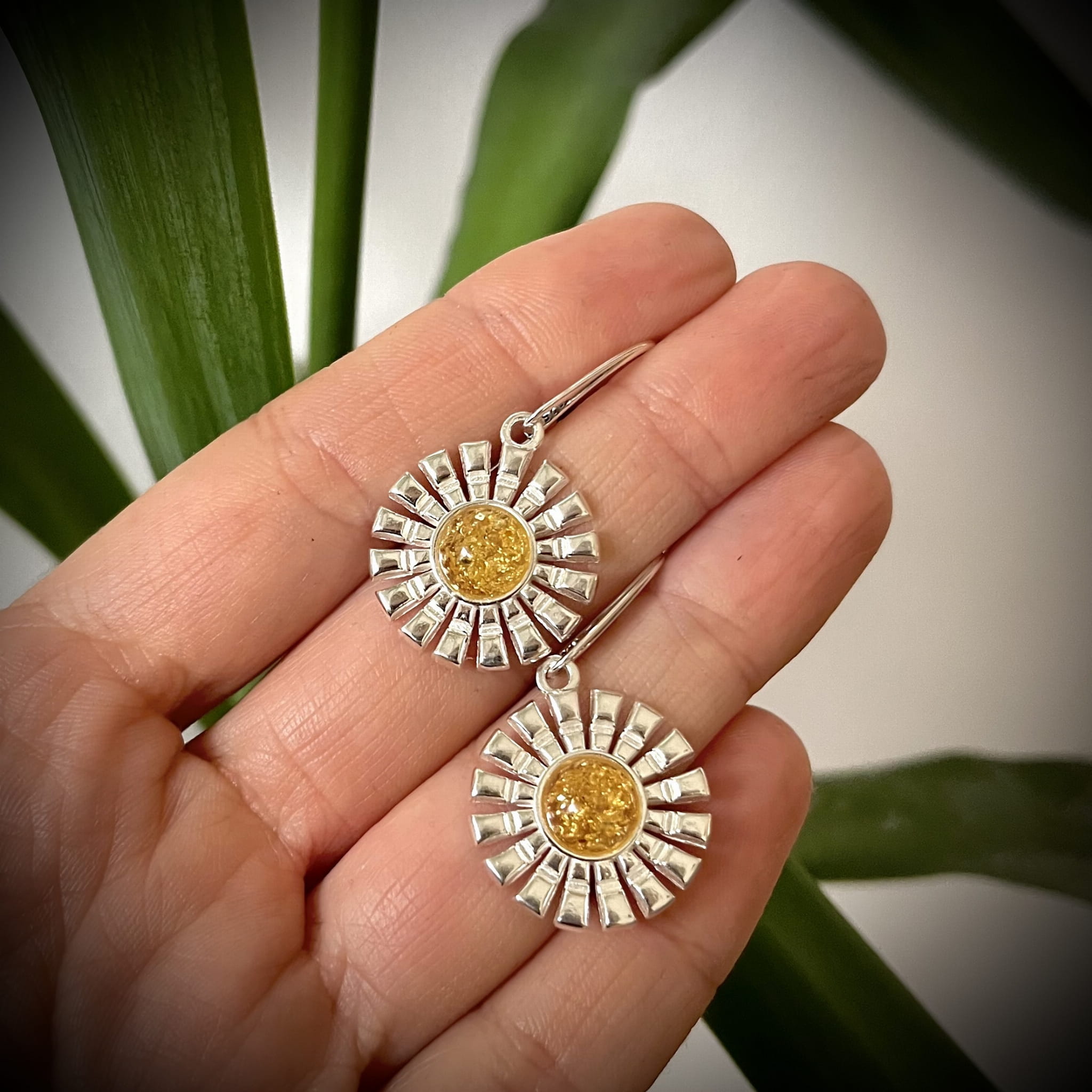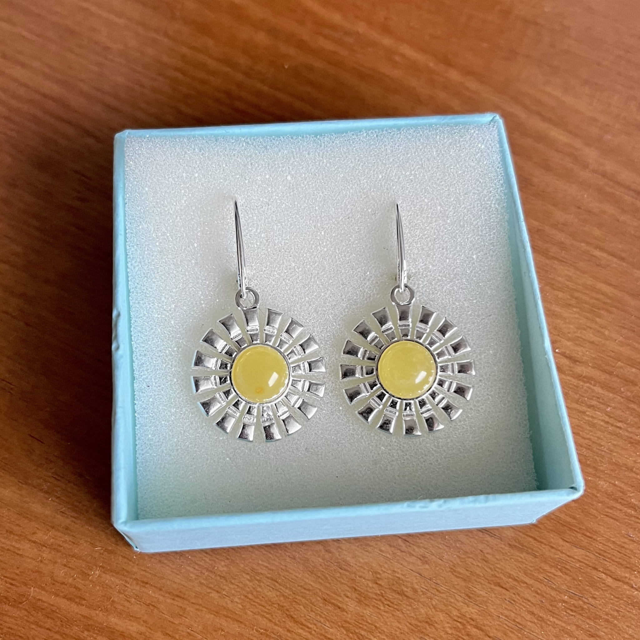 Kolczyki Słońce z Bursztynem Bałtyckim