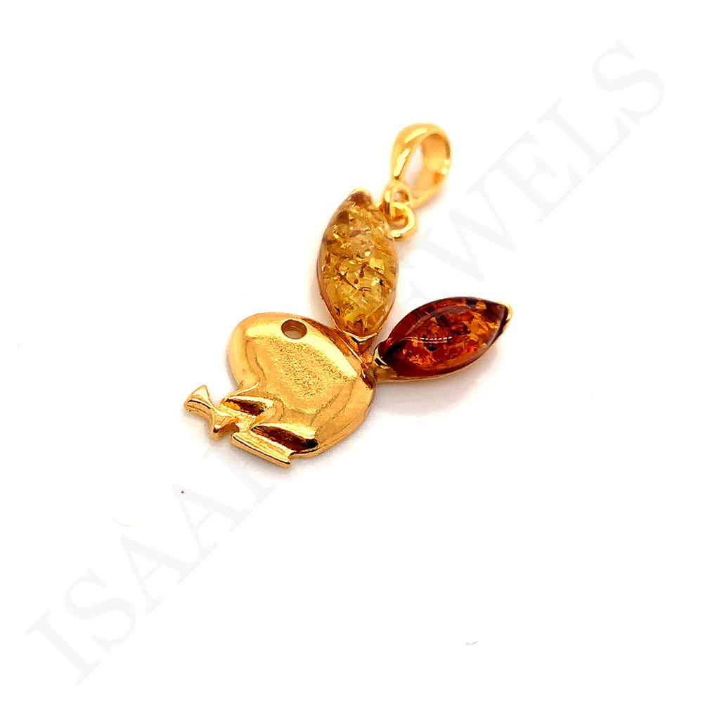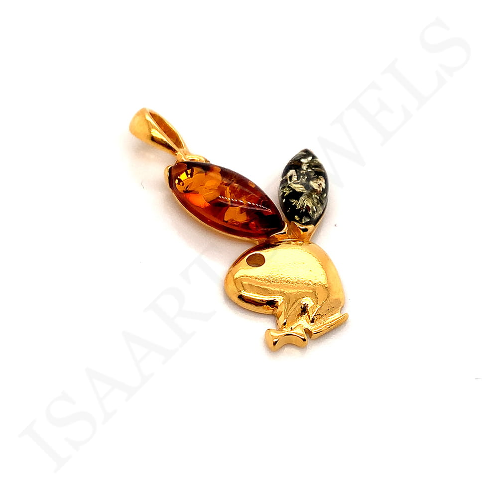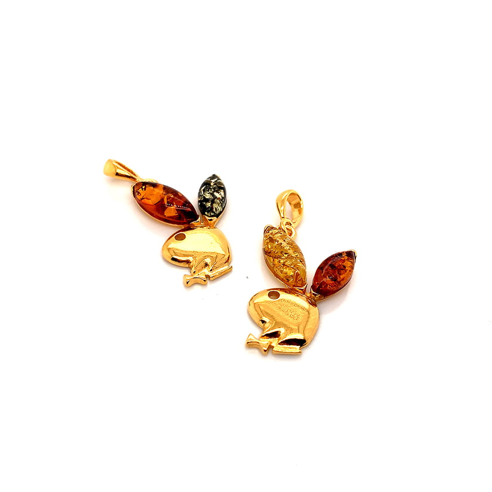 Wisiorek ten zrobiłam na kształt słynnego Króliczka, zamieszczając na jego uszach wyjątkowe i niewielkie bursztynowe oczka.